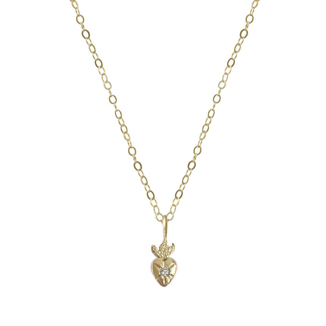 Symbolizing "eternal love", the sacred heart charm shines beautifully from a 14k yellow gold chain. Layer this sweet necklace, or add new symbolism to your charm holder; the Amulet collection is made to mix, match, and layer up.