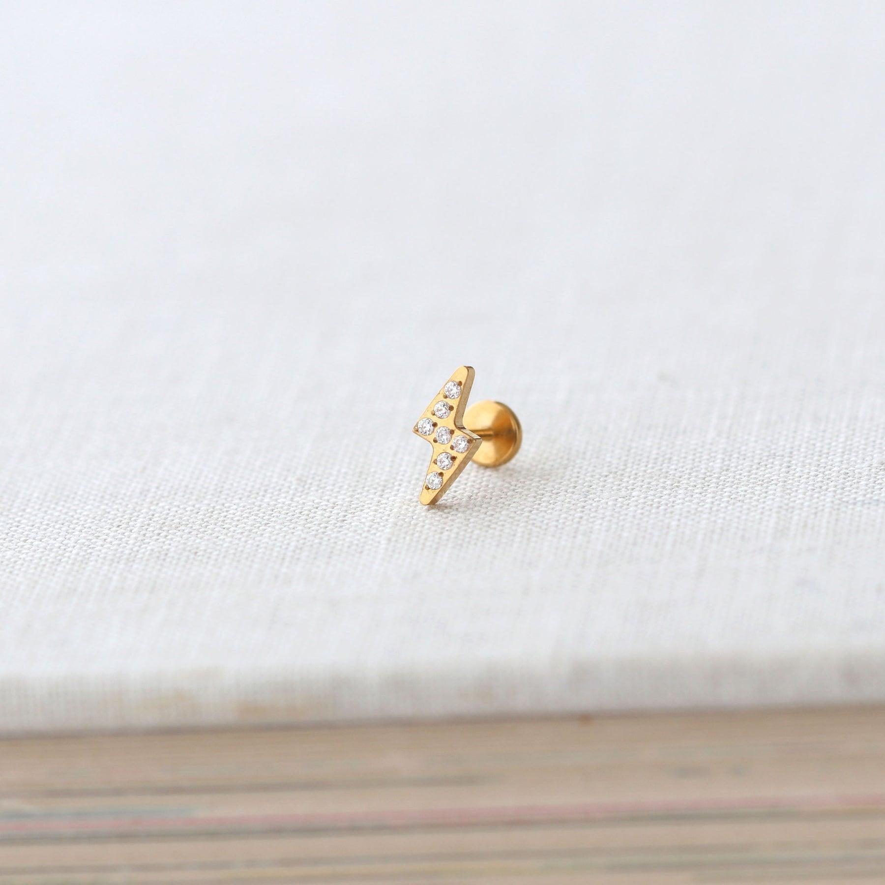Add a flash of brilliance with this Lightning Bolt Crystal Titanium Flat Back Stud. Featuring sparkling rows of cubic zirconia crystals set in hypoallergenic titanium, it’s bold yet refined. Designed for all-day comfort and endless shine, this tiny bolt brings just the right edge to your ear stack. Lightweight, striking, and unforgettable.