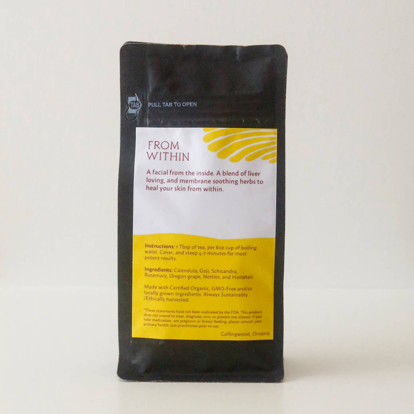 When skincare from the exterior isn't enough! A blend of herbs to support our skin, hair and nails natural radiance and power. Using herbs like Calendula, Nettles + Oregon Grape helps your inflamed, allergic and/or sensitive skin through their healing, nourishing and soothing abilities. Beyond the magical taste and look of their berries, Goji and Schisandra are also full of amino acids and antioxidants that help with both protecting and maintaining our skins moisture and collagen production.