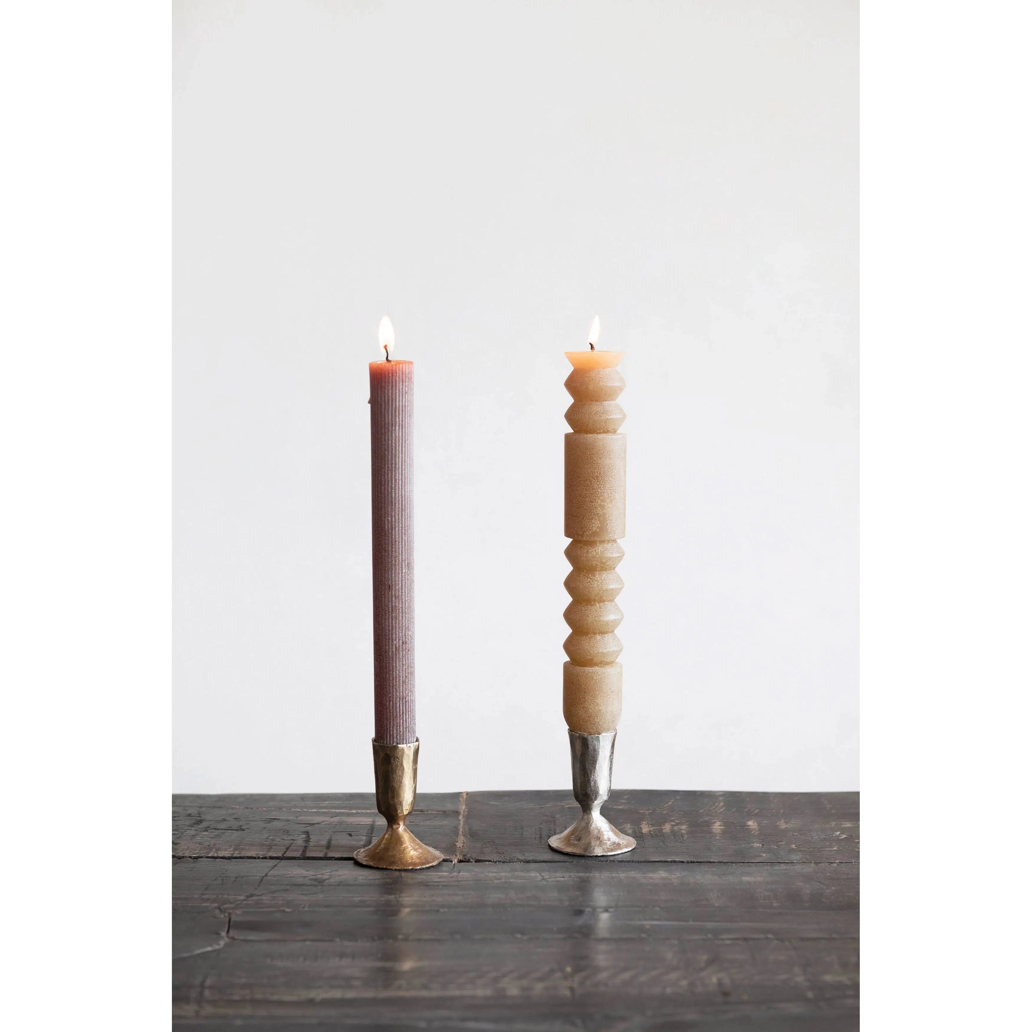 These cast iron taper holders come in two different finishes: brass and brushed silver. Sold individually.