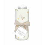This swaddle blanket is perfect for any little goose. Steal the spotlight at your next baby shower with Mon Ami's Mother Goose-themed baby blanket. Generously sized and crafted of premium cotton muslin, this luxuriously soft swaddle blanket will keep baby snug and happy. Our gosling-covered baby blanket can also be used as a sun shield over a stroller or car seat, as a privacy throw for nursing or as a plush playmat for tummy time.
