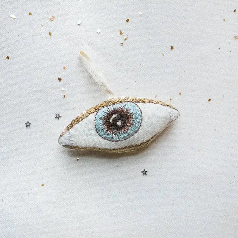 These signature lavender-scented ornaments are a lovely gift for any time of year. Perfect for gift toppers, closet or drawer sachets, holiday ornaments, or year-round décor. Each scented ornament is hand illustrated and embroidered using vibrant polyester threads on assorted linens. Each ornament is hand cut, turned, and stuffed with organic cotton and lavender. Natural twill tape is placed on top for hanging.