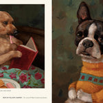 Welcome to Alison Friend’s world of dogs, a singular and very special place created by an artist with a unique gift for depicting that ineffable thing we call “character”—dog characters, actually—using oil paint, empathy, techniques of the Old Masters, and an imagination like no other. With their big expressive eyes and Mona Lisa smiles, charming habits and childlike pleasures, the subjects of these portraits seem all too human yet fantastically doglike.