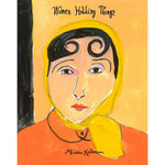 Women Holding Things includes the bright, bold images featured in the booklet as well as an additional sixty-seven new paintings highlighted by thoughtful and intimate anecdotes, recollections, and ruminations. Most are portraits of women, both ordinary and famous, including Virginia Woolf, Sally Hemings, Hortense Cezanne, Gertrude Stein, as well as Kalman’s family members and other real-life people. These women hold a range of objects, from the mundane—balloons, a cup, a whisk, a chicken, a hat—to the abstract—dreams and disappointments, sorrow and regret, joy and love.