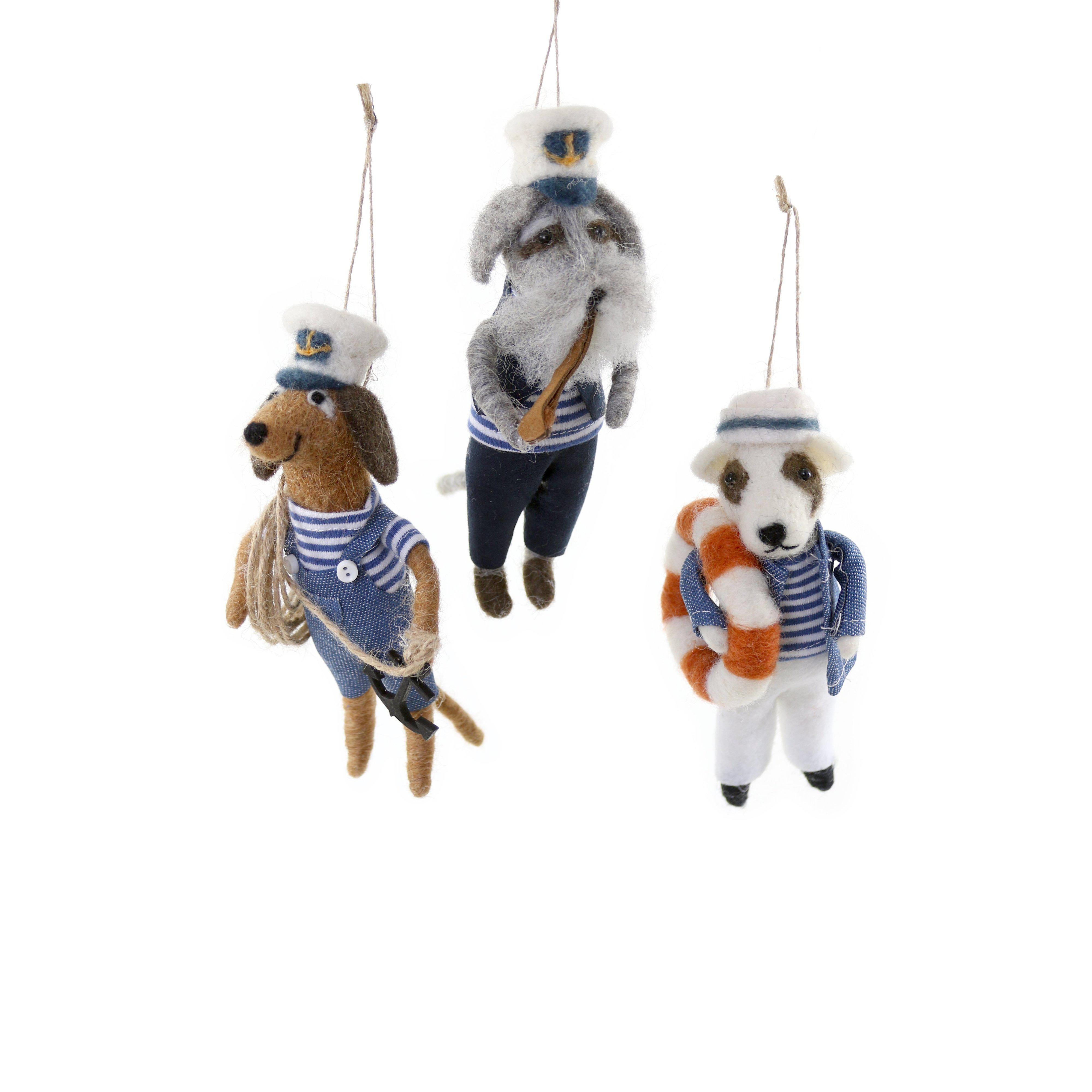 Ornaments range from 3.5" x 5" and are made of glass, metal or felt.
