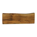 Crafted of acacia wood with a live edge this cutting board is the new entertaining staple. Acacia is known for its exceptional durability. The edge is natural, and each will vary. Rinse with soap and water and dry immediately, apply oil as needed.