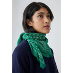 Inspired by the bandana, it features fringed edges and a square format of 70 x 70 cm, perfect for wearing around the neck or in the hair. Its graphic linear edges bring a modern and structured touch to this piece made from 100% wool.