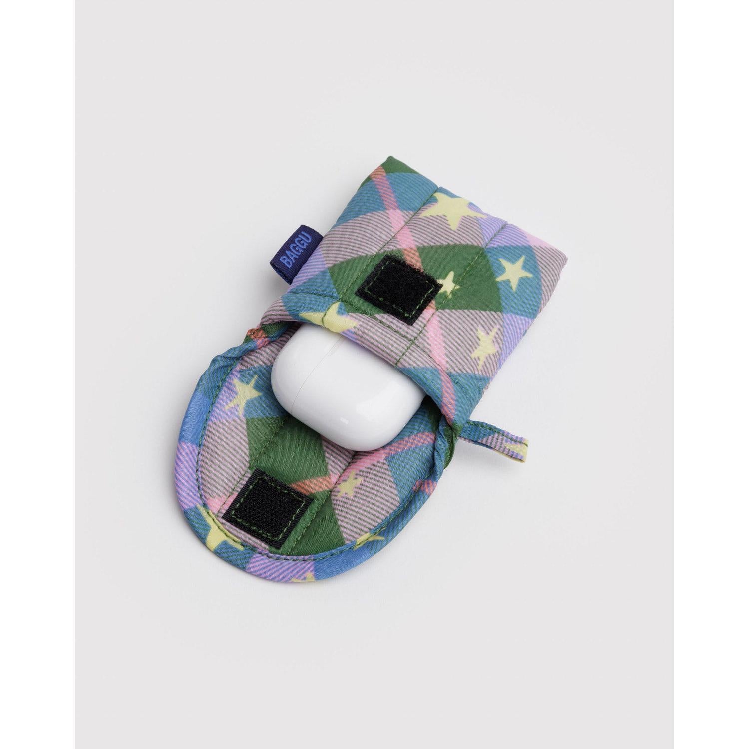 Puffy Earbuds Case | Green Star Plaid