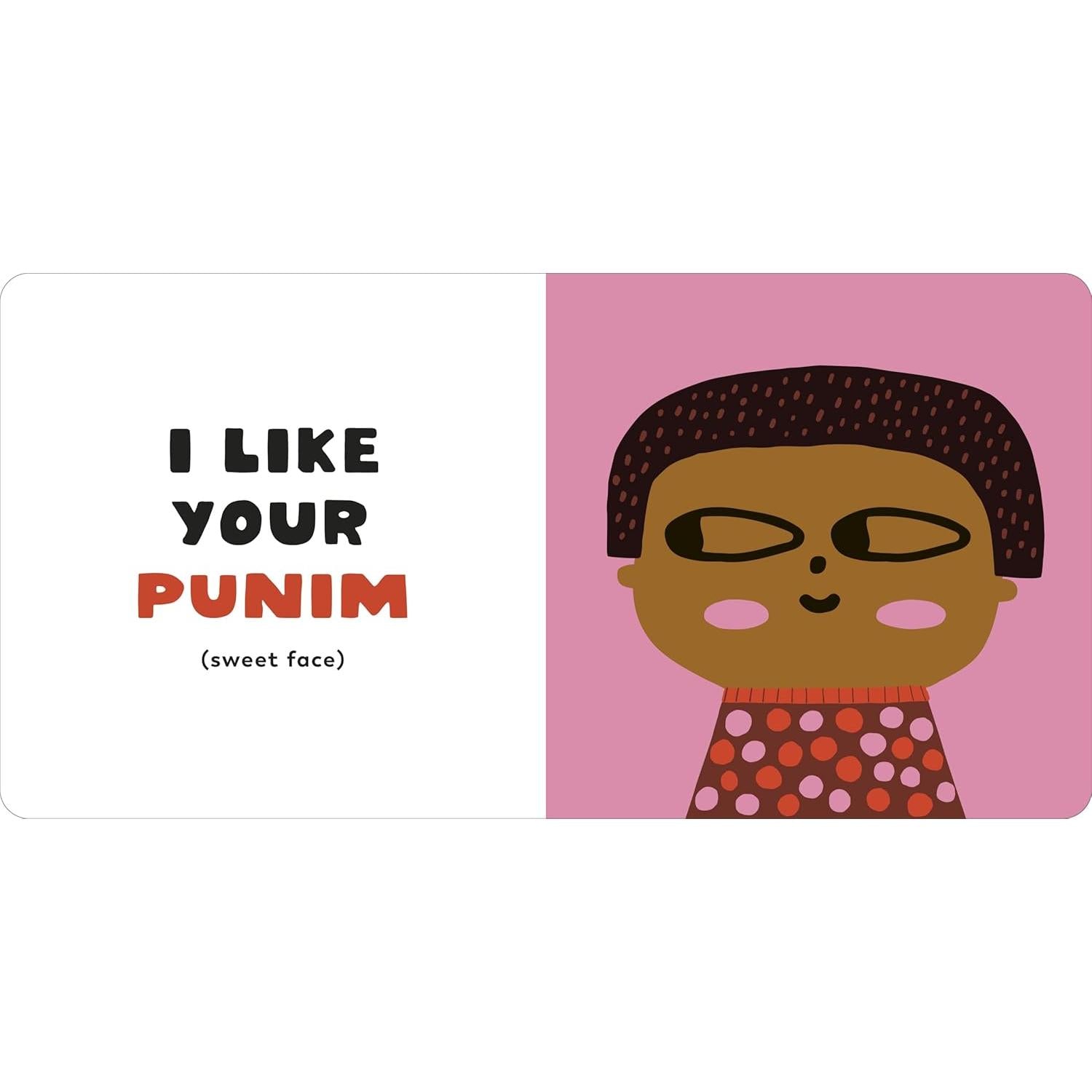 I Like Your Chutzpah is a casebound board book that showcases and defines popular Yiddish words through a playful lens that will validate Jewish readers, and inform and entertain Jews and non-Jews alike!