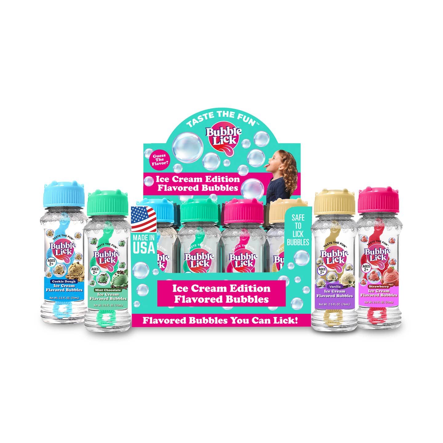 Scoop up the fun with our Ice Cream Assortment Bubbles—where playtime smells just as sweet as it feels! This deliciously scented collection includes four classic ice cream-inspired aromas: Cookie Dough, Mint Chocolate Chip, Strawberry, and Vanilla. Each bottle fills the air with the mouthwatering scent of your favorite frozen treats, turning every bubble into a burst of sweet-smelling joy. Perfect for parties, outdoor play, or just a little everyday fun—no spoon required!