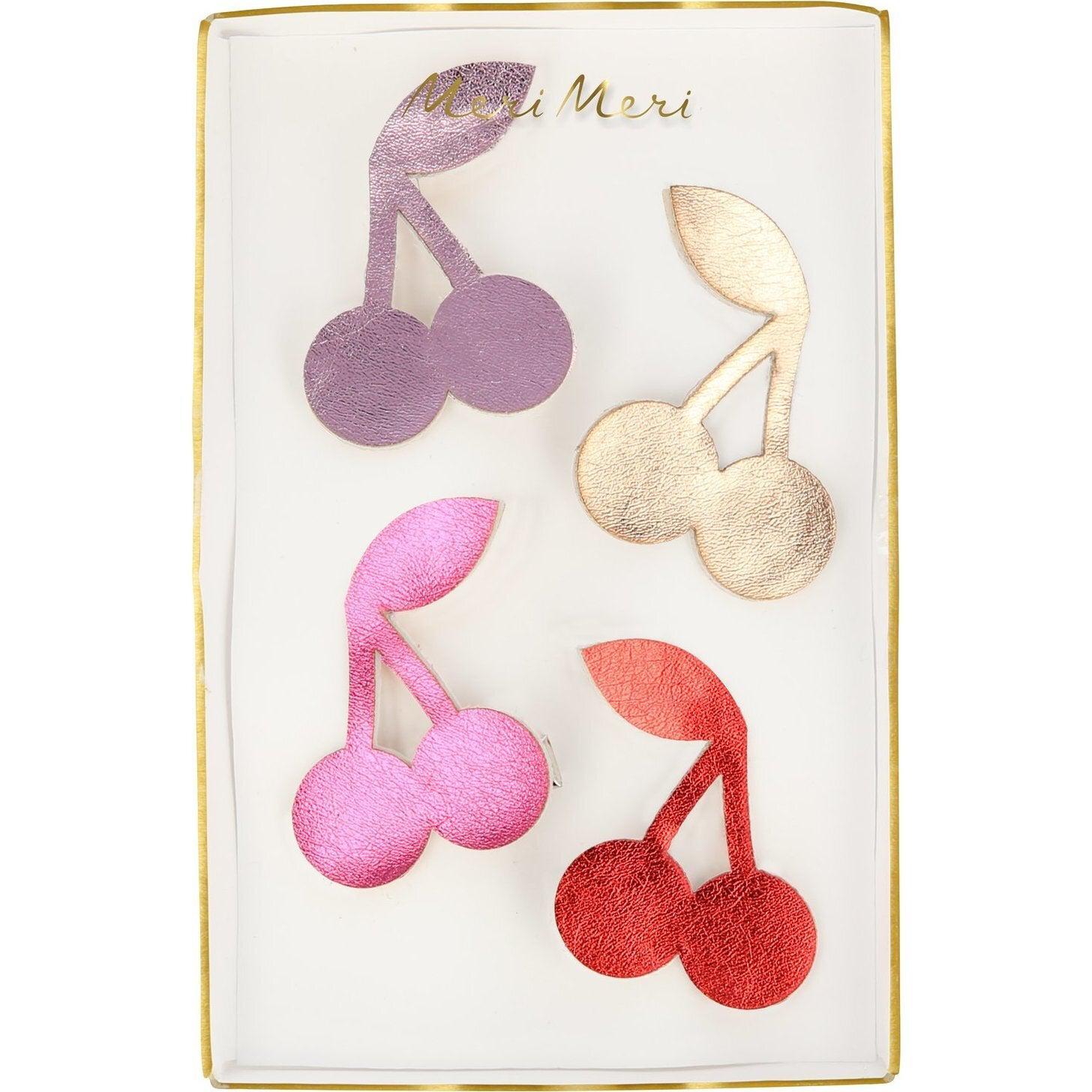 If you're looking for sensational hair accessories, then these cherry hair clips are it! They are crafted from shiny leatherette in 4 vibrant colors, fruit fun that is perfect for parties and for everyday style.