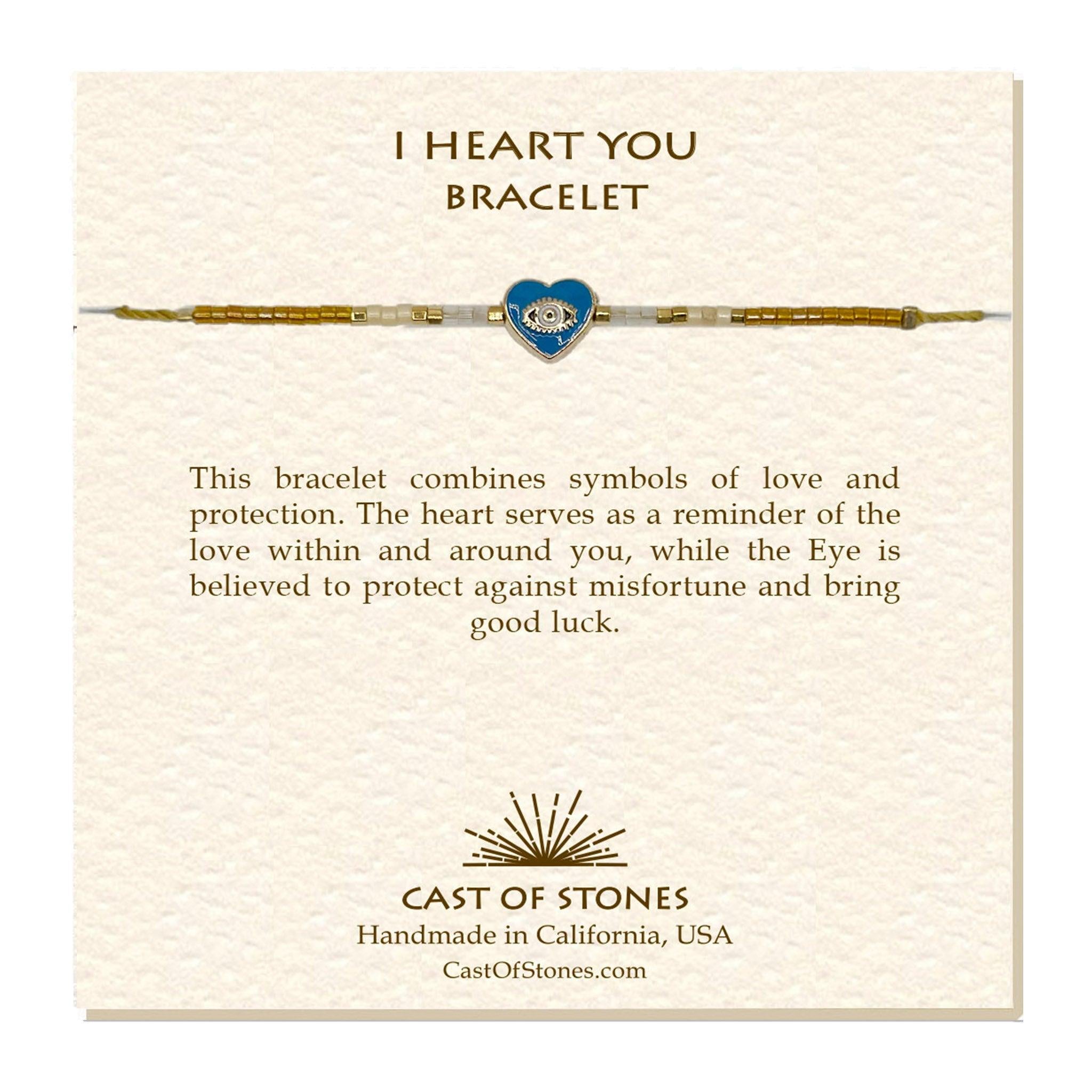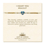 This bracelet combines symbols of love and protection. The heart serves as a reminder of the love within and around you, while the Eye is believed to protect against misfortune and bring good luck.
