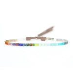 Handwoven beaded bracelet with sterling silver clasp and tassel ends, 1/8" width.
