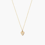 Playful yet elegant, this 14k gold necklace features a dainty heart charm with white diamond inlay. The perfect layering piece. Fastens with an adjustable ring clasp closure.
