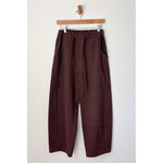 These are the pants we love to live in! She has thoughtful design details like an elastic high waist that gives you a room to breath, slightly curved leg shape, cropped length to show off your favorite socks and shoes, unique side panels and deep pockets. The heavy-weight canvas material likely adds durability and gives them a structured look. The Arc pants would make a great addition to everyone's wardrobe and complement to all the Le Bon Shoppe pieces you own!