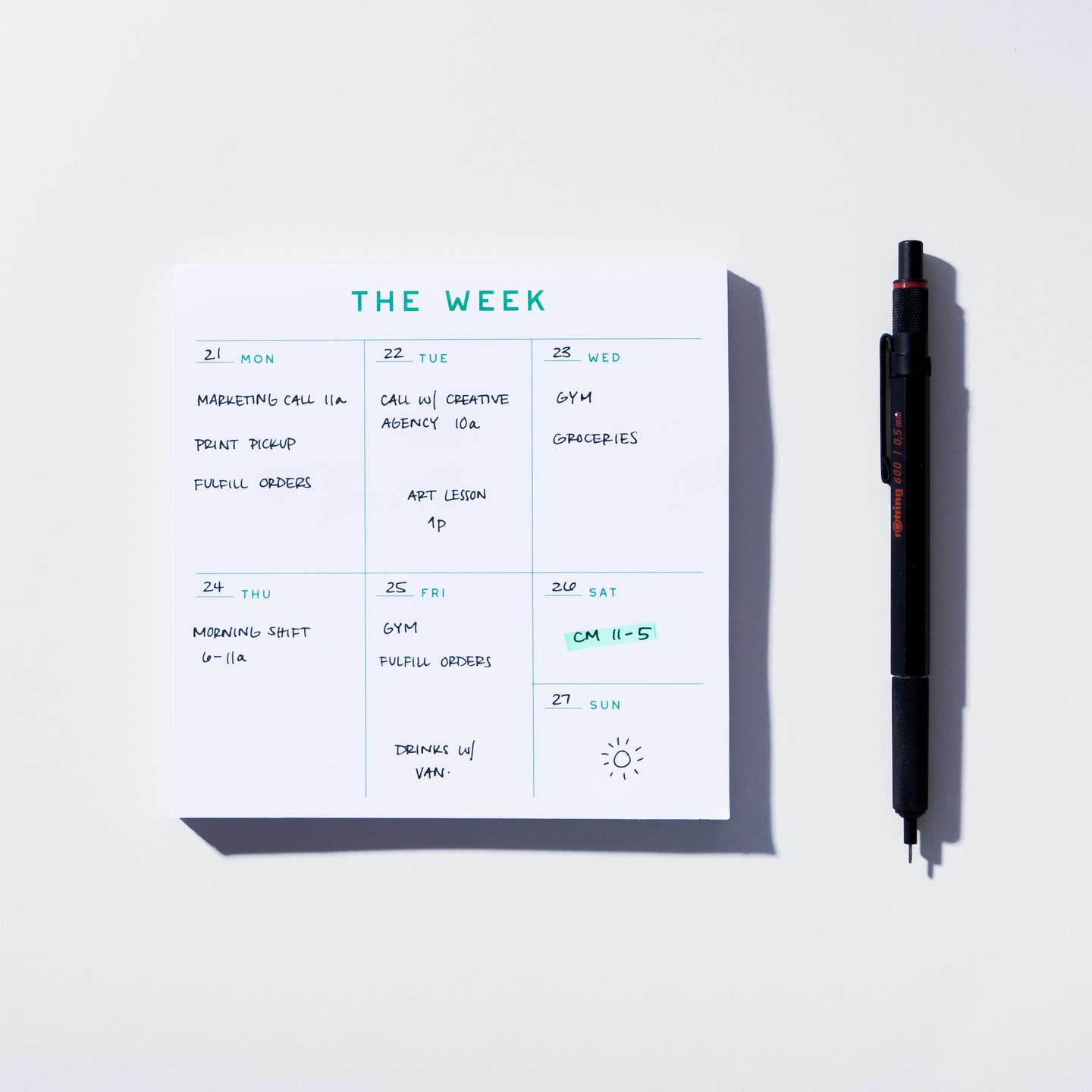 A week-at-a-glance planning system that allows you to visualize and track your weekly goals.