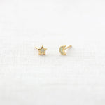 A match made in the cosmos. This mismatched pair features one shimmering opal star and one glowing opal moon—both crafted in 18K gold vermeil for a dreamy, celestial vibe. At 4mm each, these studs are small but full of sparkle. Wear them solo or mix into your ear stack for a little lunar magic