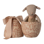 Inside this metal egg, printed with a beautiful print and a big soft bow on top, you will find a small soft lamb. A perfect gift for the small ones. The lamb has magnets in hands so it can hold around the egg