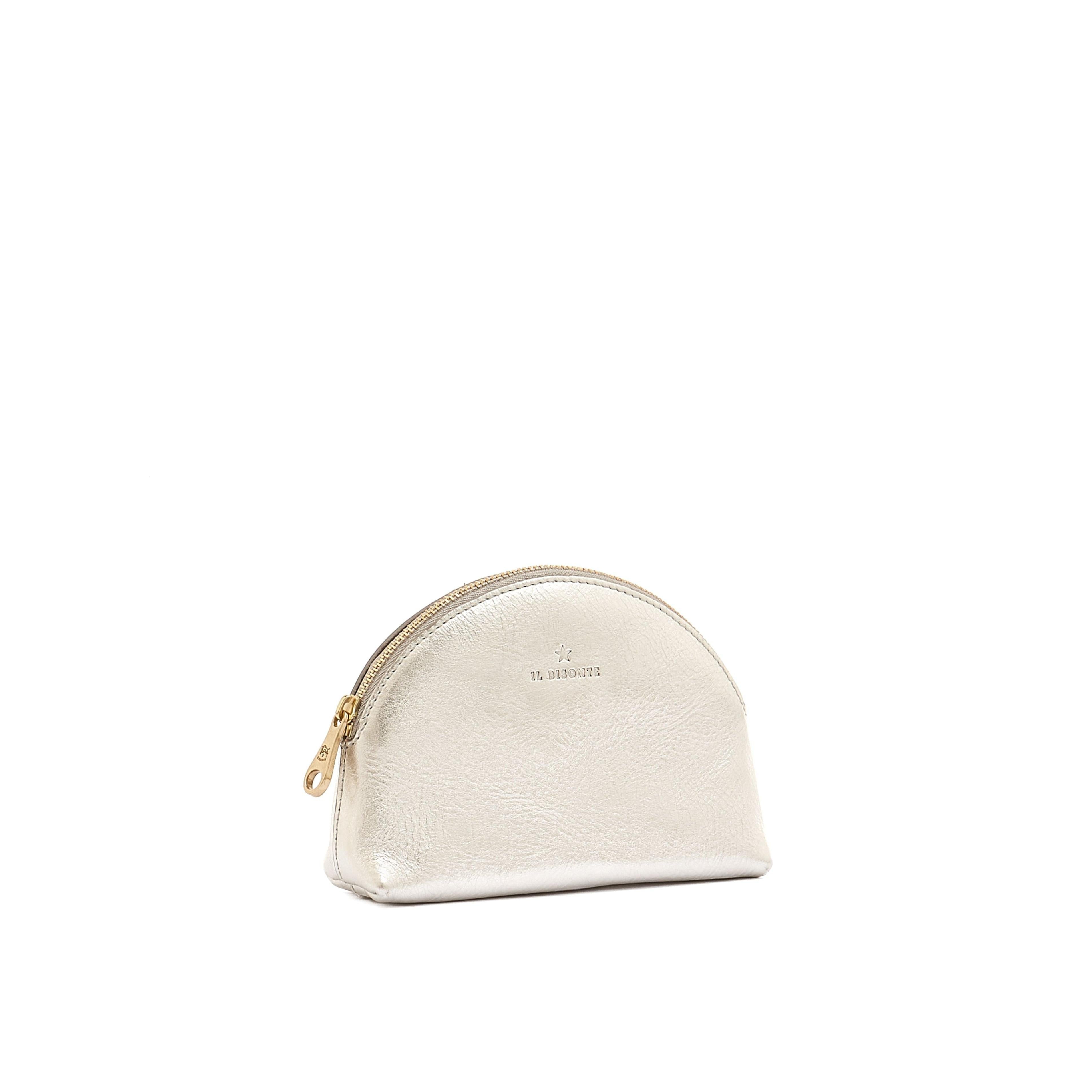 A timeless coin purse in shimmery cowhide leather with brass hardware.