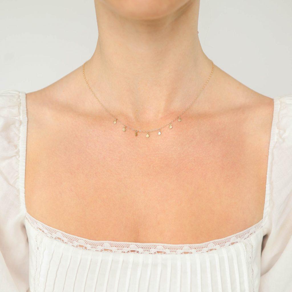 14K 7 Tiny Disc Drop Necklace