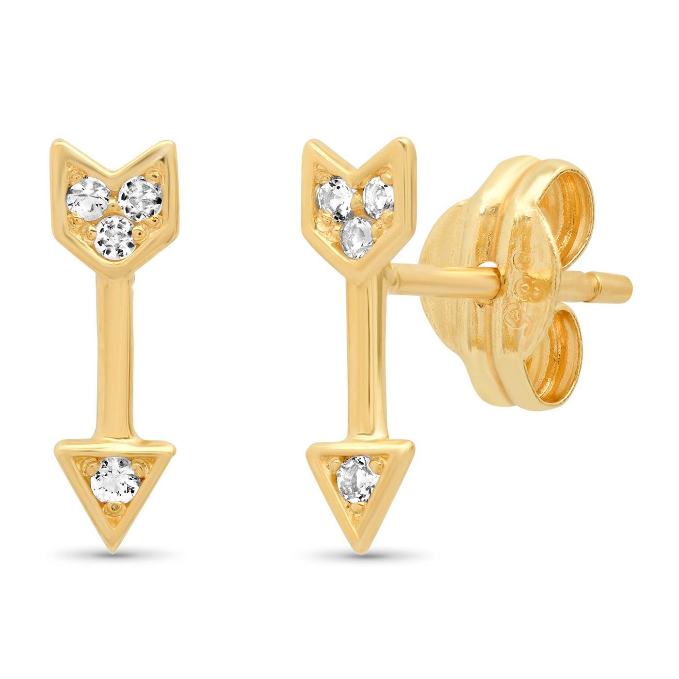 Delicate, simple and stunning. These arrow stud earrings are made of solid 14k gold and white topaz. The perfect subtle addition to any outfit, whether worn alone or with multiple piercings.