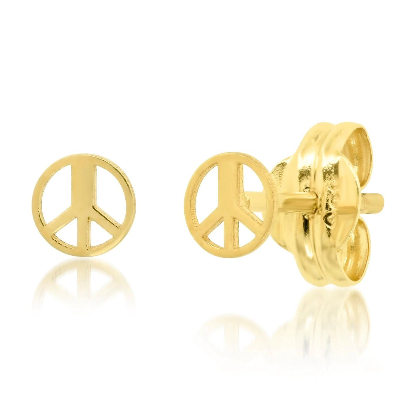Wear these studs every day without needing to worry about special care to keep them sparkling. These unique solid 14k gold peace stud earrings are stunning on their own or with multiple piercings and are heirloom quality for many years of timeless style.