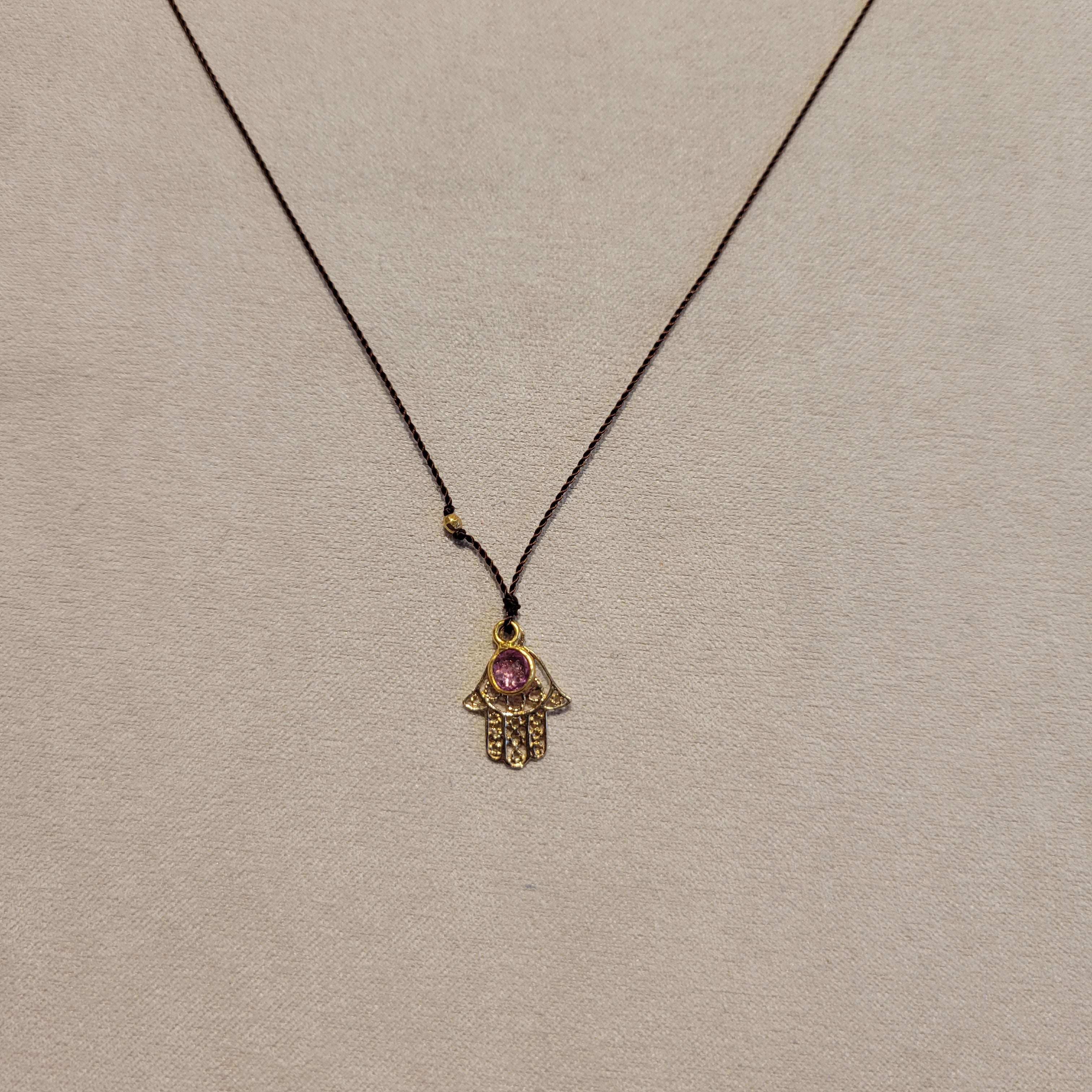 14k Hamsa Necklace with Pink Sapphire Charm