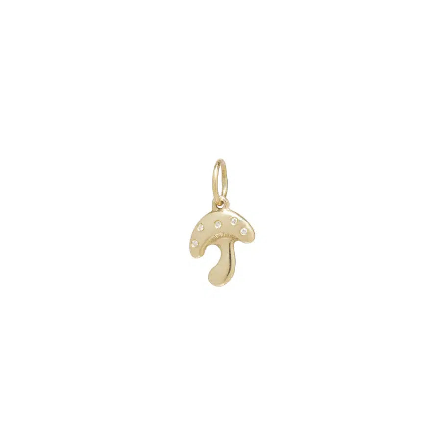 - 14k yellow gold small mushroom charm with white diamonds