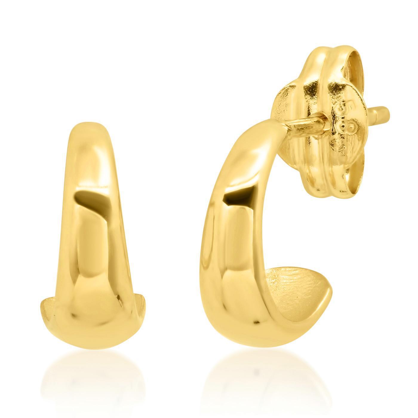 These sleek hoops with tapered design and huggie fit are a unique style statement that you can wear all day, every day. Made of solid 14k gold, with a 10mm diameter, these hoops graduate from 2mm wide at the top to 5mm wide at the bottom and slip seamlessly into any style.