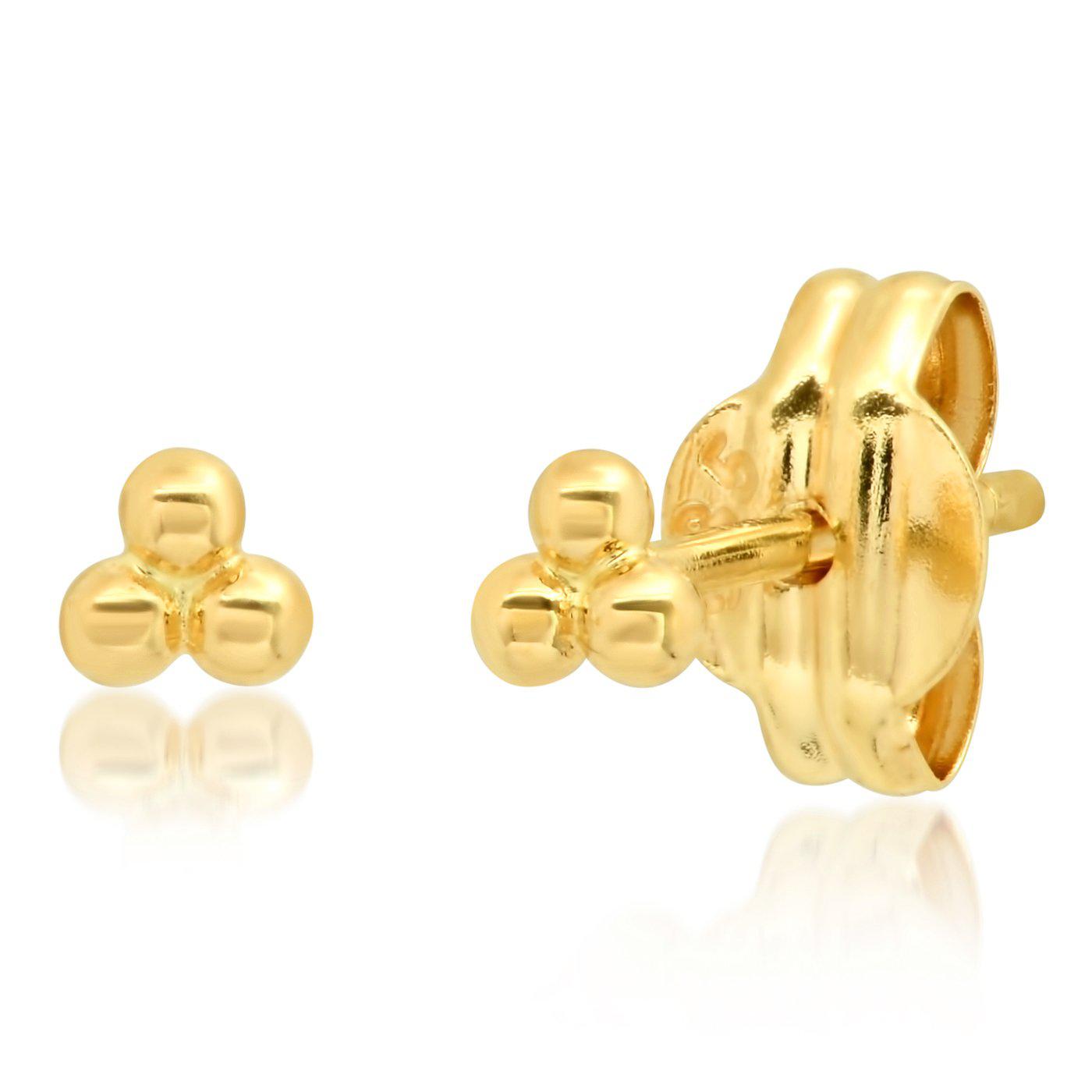 Add a touch of simple elegance with our 14k gold trinity cluster post earrings. Approximately 3mm wide with a trio of 3 gold beads, these stunning earrings are a gorgeous addition to any look.