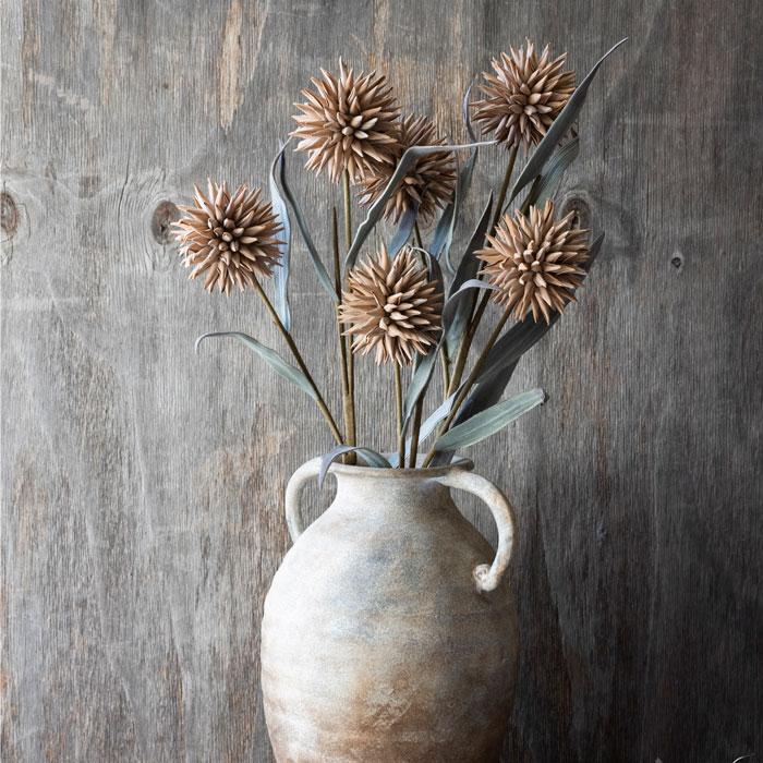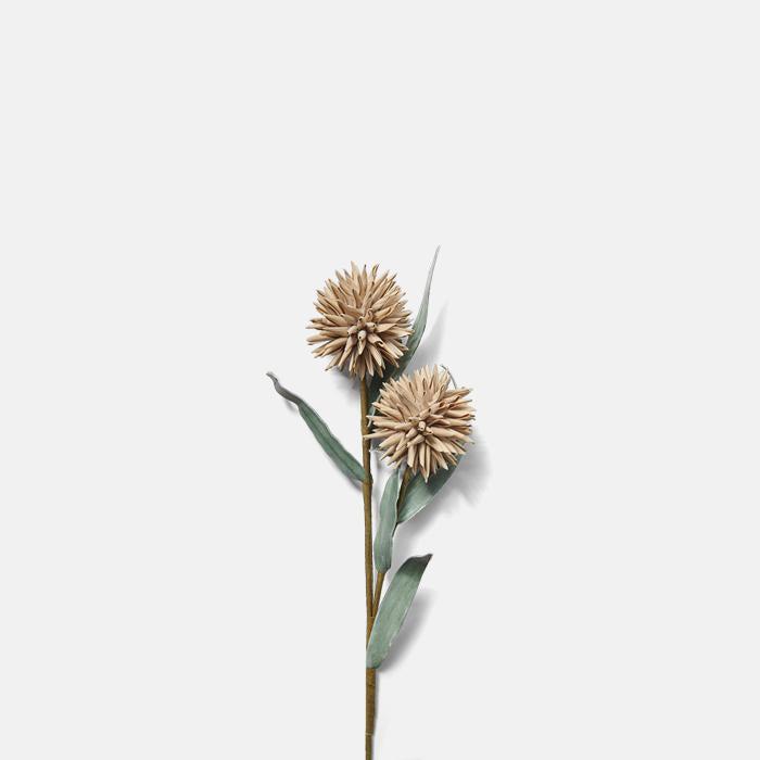 Oh so striking and full of texture, our globe thistle stem will bring a sense blossoming meadows and hillsides to your vases. With a spiky spherical flower head on a tall leafy stem, it will add so much drama to your floral arrangements.