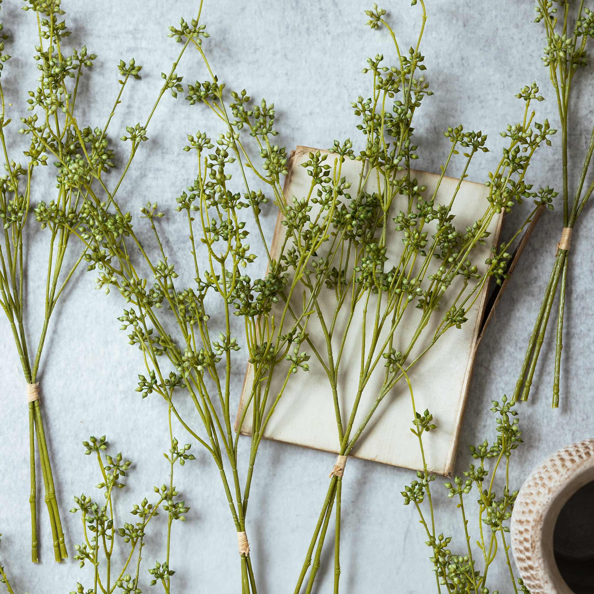 Our Artificial Succulent Bunch, formed of 3 beautiful stems is the epitome of the new season. With its bud like form and spring green hue, we are piling this beautiful botanical into vases to uplift our homes for the new season. A delicate stem that works as well on its own, it's also amazing with larger headed flowers. Adding interest and texture, this is a versatile botanical.