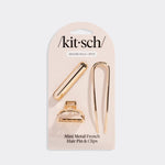 Enhance your hair style with the KITSCH Mini Metal French Hair Pin & Clips 3pc Set in Gold. This set of three is ideal for adding a touch of glamor to your look or for securing your hair in a stylish updo.