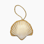 Ornament with beads and metallic thread hand stitched on shimmering metallic fabric; backed to shimmering metallic fabric.