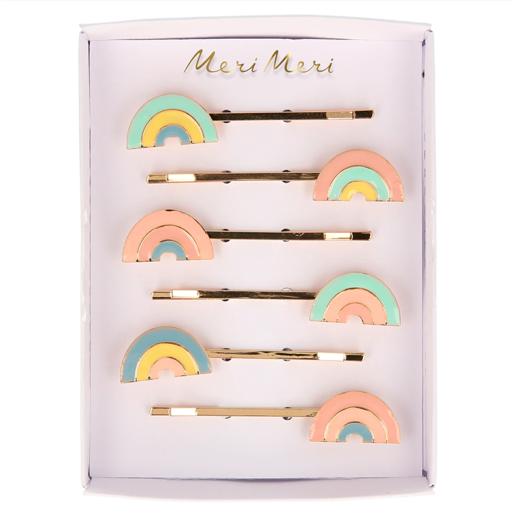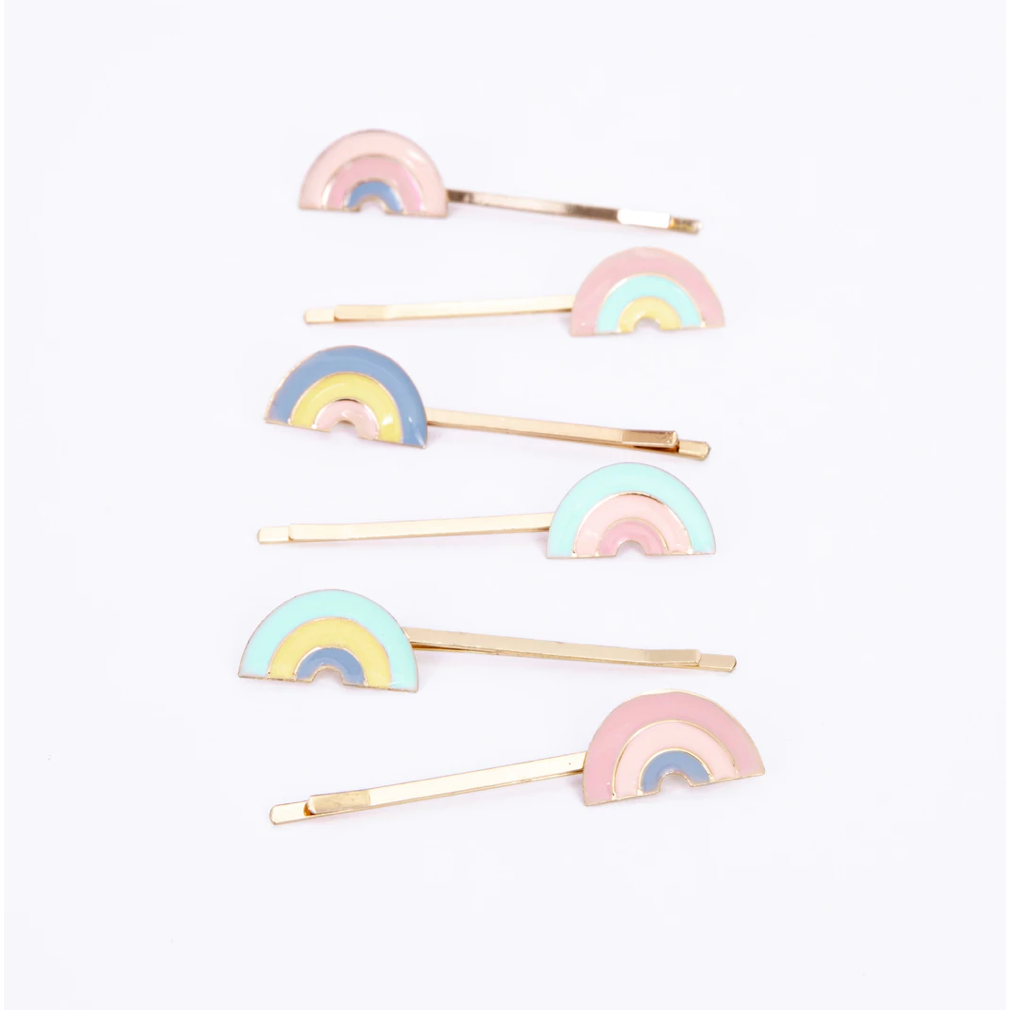 Make your hairstyle look rainbow bright no matter what the weather, with this wonderful set of hair slides. They feature colorful rainbows crafted in enamel.