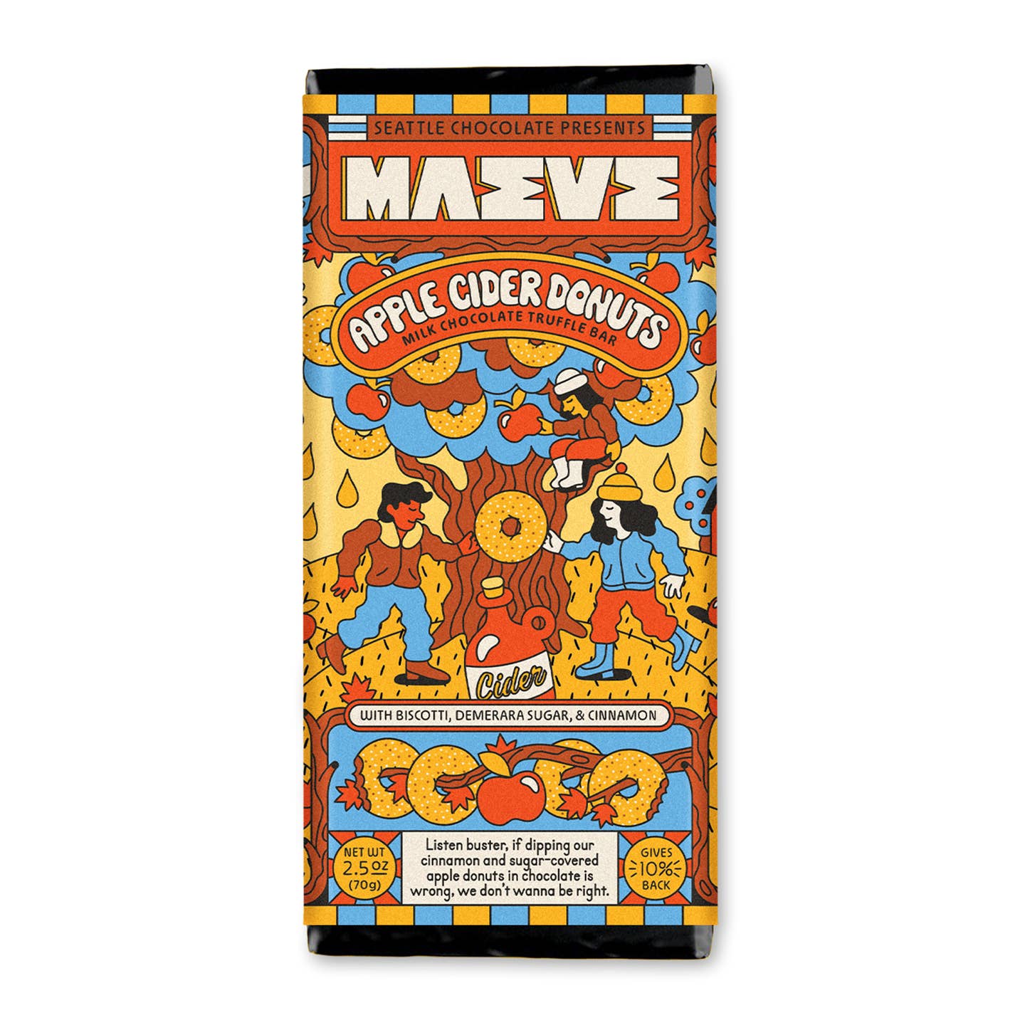 Listen, if dipping our cinnamon and sugar-covered apple donuts in chocolate is wrong, we don't want to be right. Flavor: Milk chocolate spiced with cinnamon, crunchy sugar bits, and biscotti.