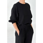 A lightweight layer for shifting seasons. The Pointelle Core Sweatshirt is made from ultra-soft jersey pointelle, offering just the right mix of breathability and warmth. With its relaxed drape and voluminous sleeves, it’s a refined take on cozy.
