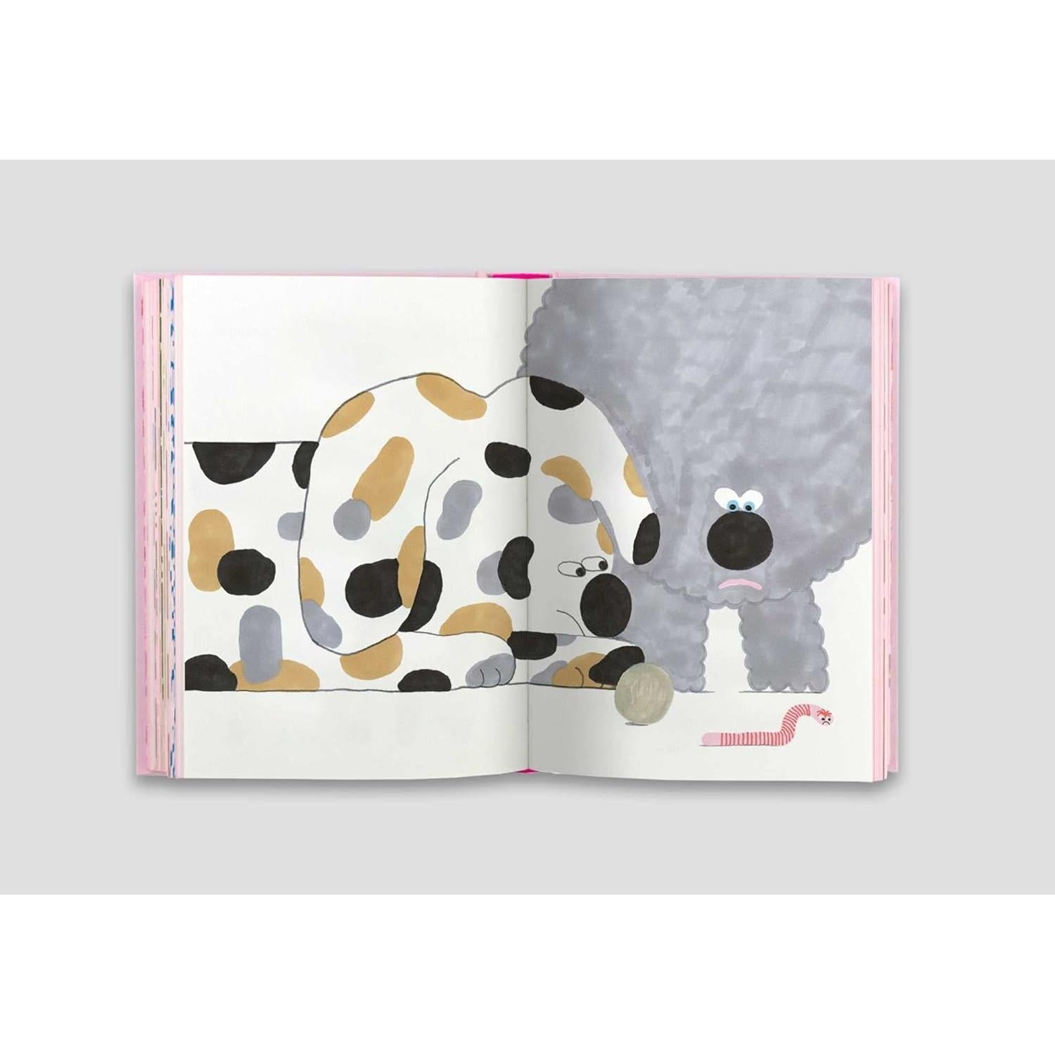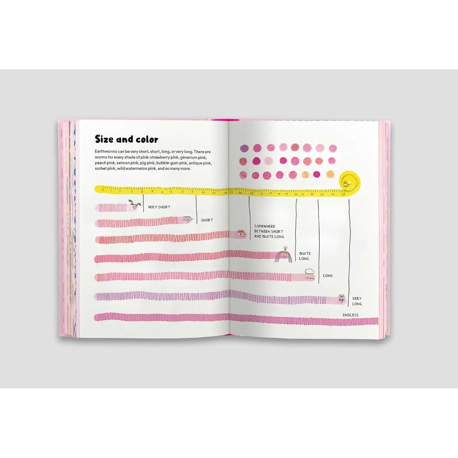 Beginning with “factual” material about worms in general, from eating habits to underground habitats to its varying shades of pink, there is much to discover about worms. The narrative then follows one worm in particular through a tragic loss of its better half (also known as the worm’s tail), becoming a metaphor for all who have loved and lost. The humor of both illustrations and text are paired beautifully, introducing a distinctive new artist with honed literary sensibility to the American audience. Vola’s pink-edged bible of worms