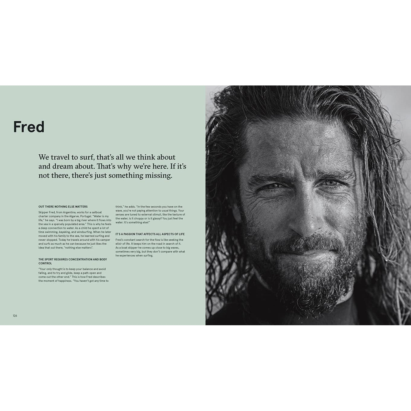 “Flow describes the feeling of a blissful mental state of complete absorption in an activity that happens as if by itself.” Join us on an adventurous road trip to the best surf spots in Europe along the Atlantic coast, which is also a trip in search of the soul of surfing in which you will meet and get to know unique and exceptional people from all over the world. With this illustrated book of authentic portrait photographs and very personal, sometimes touching, sometimes crazy stories, the artist couple shows a variety of motivations and lifestyles, far away from palm trees, beach bars and other clichés. As different as their protagonists and their stories are, they all have one thing in common: the desire and longing for the sea, the wind, and the waves – in search of adrenalin and freedom. The book is an inspiring and emotional journey for the search of one’s own “flow”.