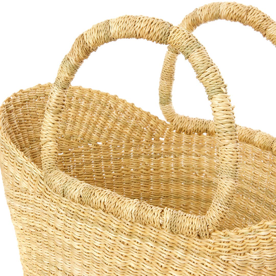 Artisans in the Bolgatanga region of Ghana weave this beautifully simple petite shopper from thick, tough elephant grass. Bolga baskets stand up to regular use and remain functional and beautiful for years.