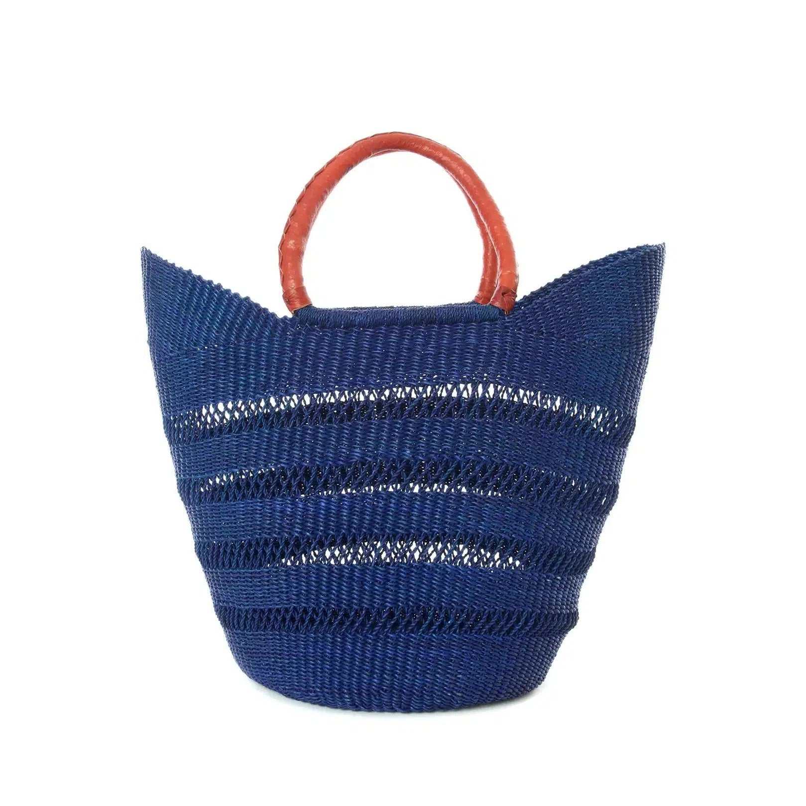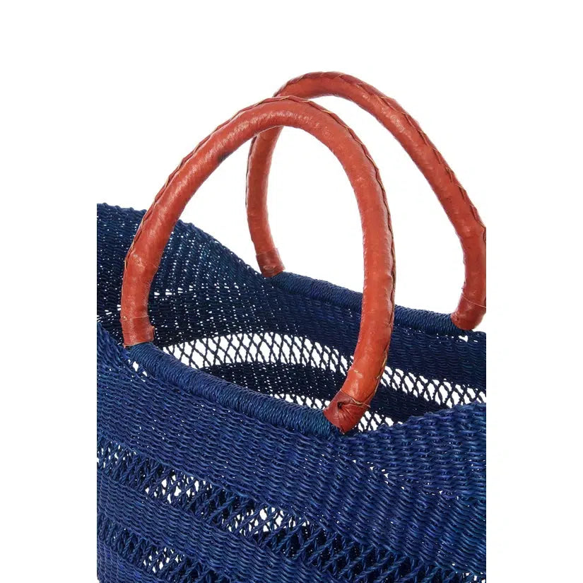 Navy Blue Ghanaian Lacework Wing Shopper With Leather Handles