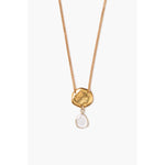18K gold plated sterling silver necklace featuring wrapped moissanite slice. 17 - 19in. length. Adjustable.