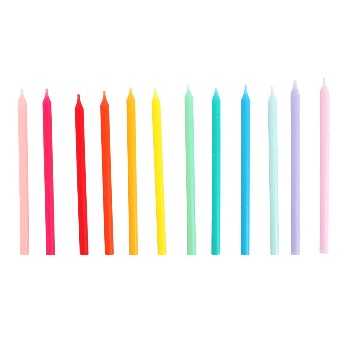 Make any cake pop with this pack of 24 rainbow candles. Each 10.5cm candle is made from paraffin wax and features a bright, bold color, perfect for adding fun to any celebration. Easy to keep in your drawer and bring out for that special occasion, these candles add a cheerful finishing touch to cakes for all ages.