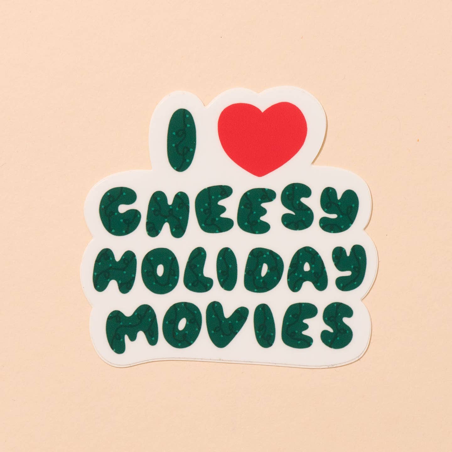 • Sticker reads "I ❤️ cheesy holiday movies"