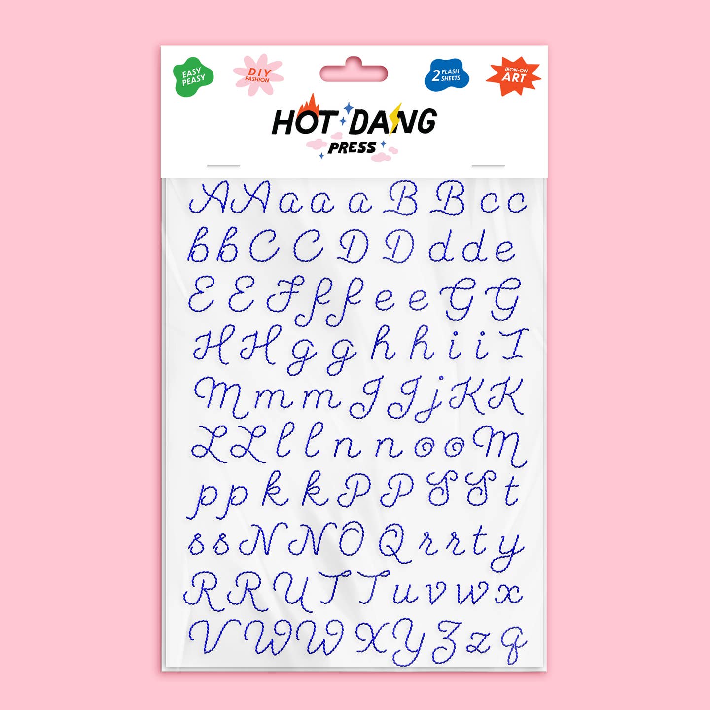 Iron-On Sheet Set | Blue Embroidery Alphabet