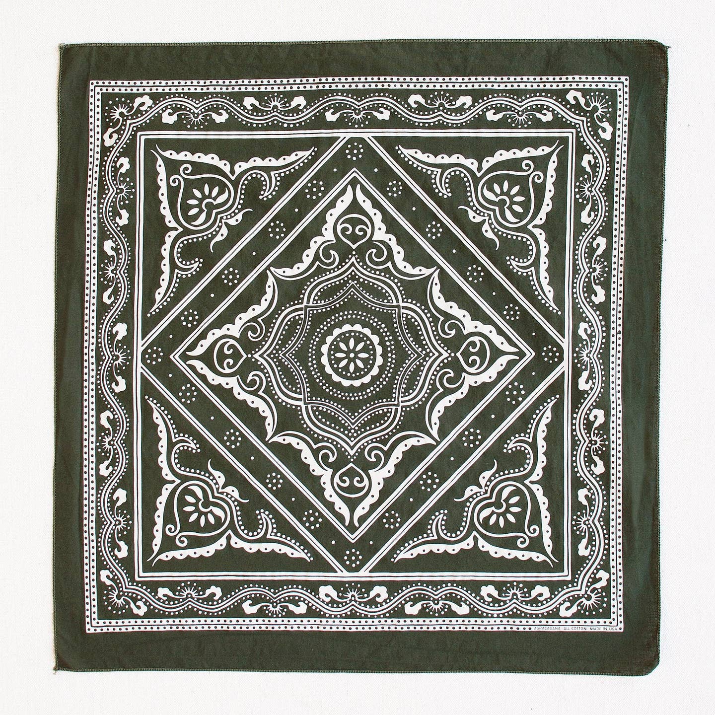 If you’re looking for a western vibe, take a look at this bandana. Featuring inspiration from antique western textiles, this unique bandana offers a mesmeric print. Perfect for use as a head bandana, a neckerchief, or to keep in your pocket as a handy kerchief or napkin.