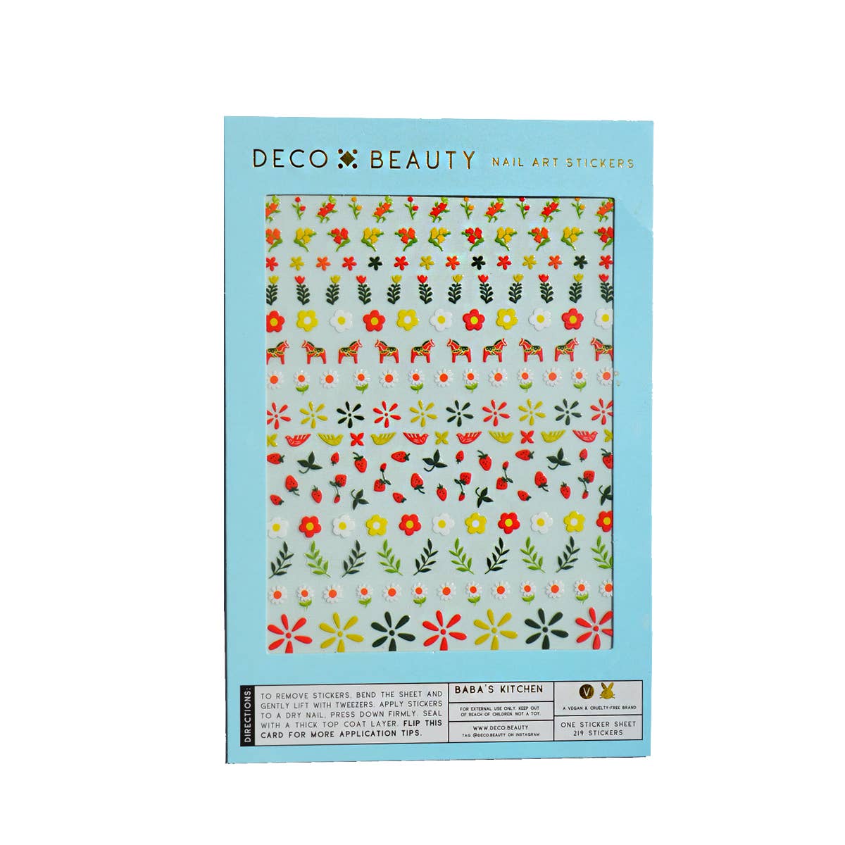 For best results, use a thick top coat (Deco's Gel Effect Plumping Top Coat was specifically designed in mind for this job) to seal the sticker on your nail. You may need to put an extra coat overtop of gold metallic stickers.