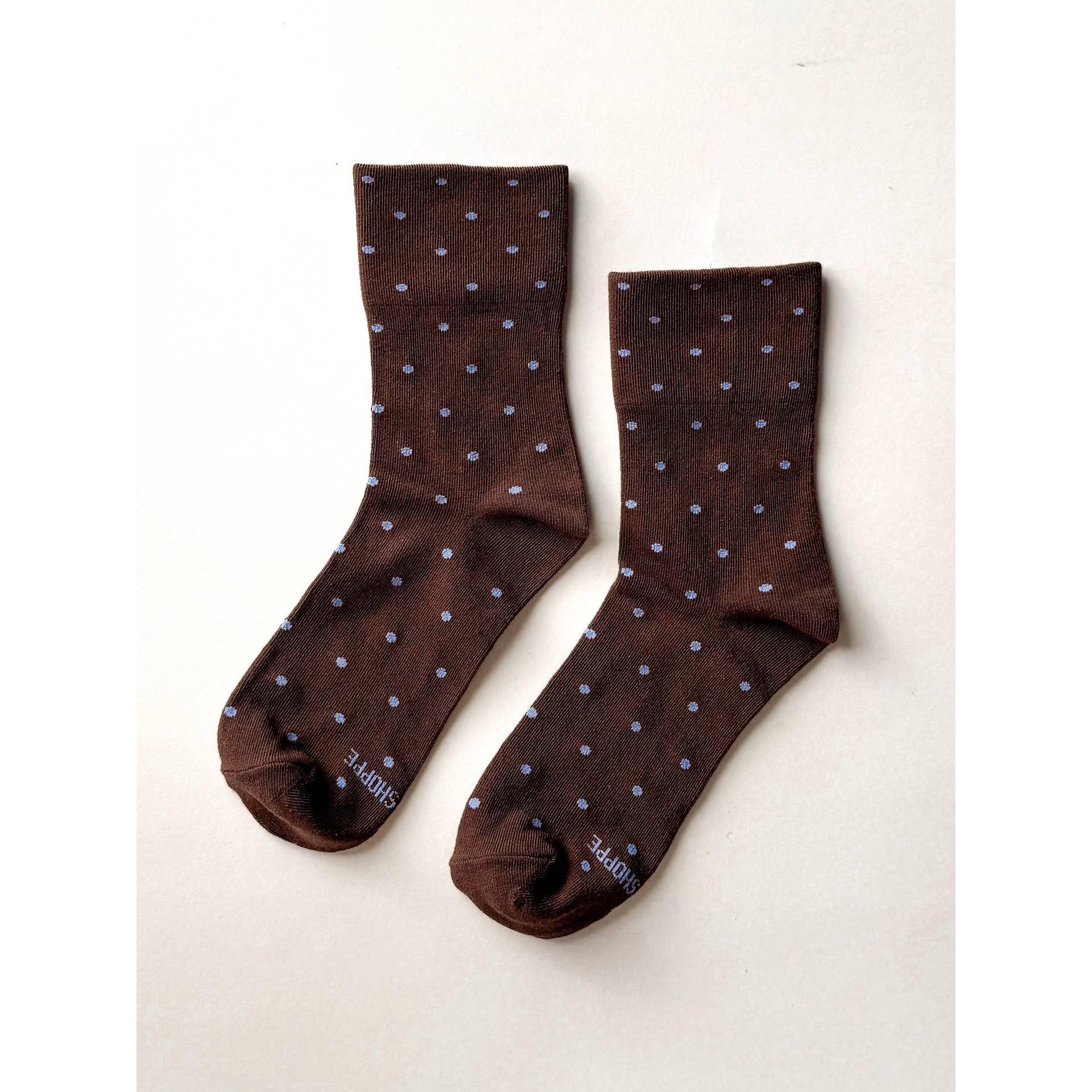 Polka Dot Sneaker Socks | Cacao + Blue