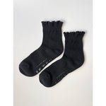 A fun, flirty addition to the Hugger group. Just like the original, this style includes a light silicone grip along the sole for easy, stay-put wear. The crew length and ruffled ankle bring a soft, playful finish—perfect for pairing with flats, clogs, or slides.