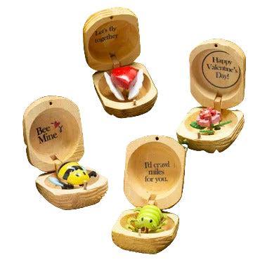 Meet the Love Bugs tiny surprises that come to life with a pop! Hidden inside a wooden case, each critter springs into action the moment you open the lid. From buzzing bees to fluttery ladybugs, every Love Bug delivers a playful pun like Bee Mine or Lets fly together! They're sweet, silly, and full of heart perfect for Valentines Day, small gifts, or just because.
